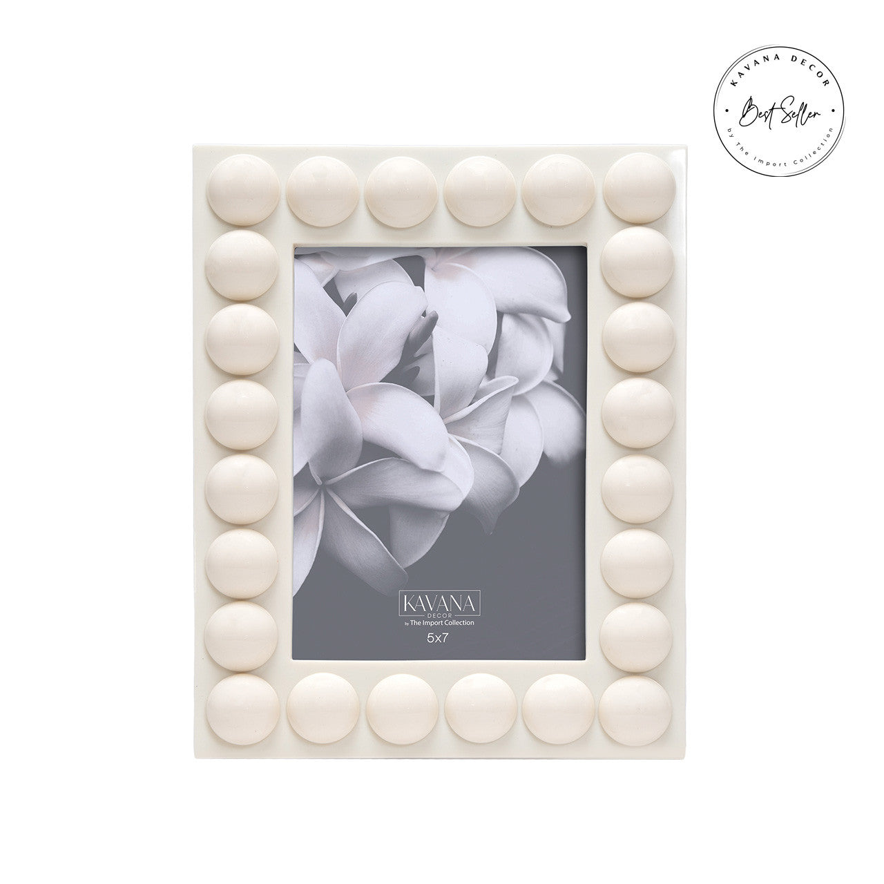 Elevate your photo display with the Monroe Frame Ivory. Crafted from high-quality resin, its beige finish and raised circular pattern bring timeless sophistication to any home. The unique bubble design adds visual depth and texture, making it a stunning accent. With perfect proportions to showcase your cherished memories, this elegant frame is a versatile choice for any decor style.