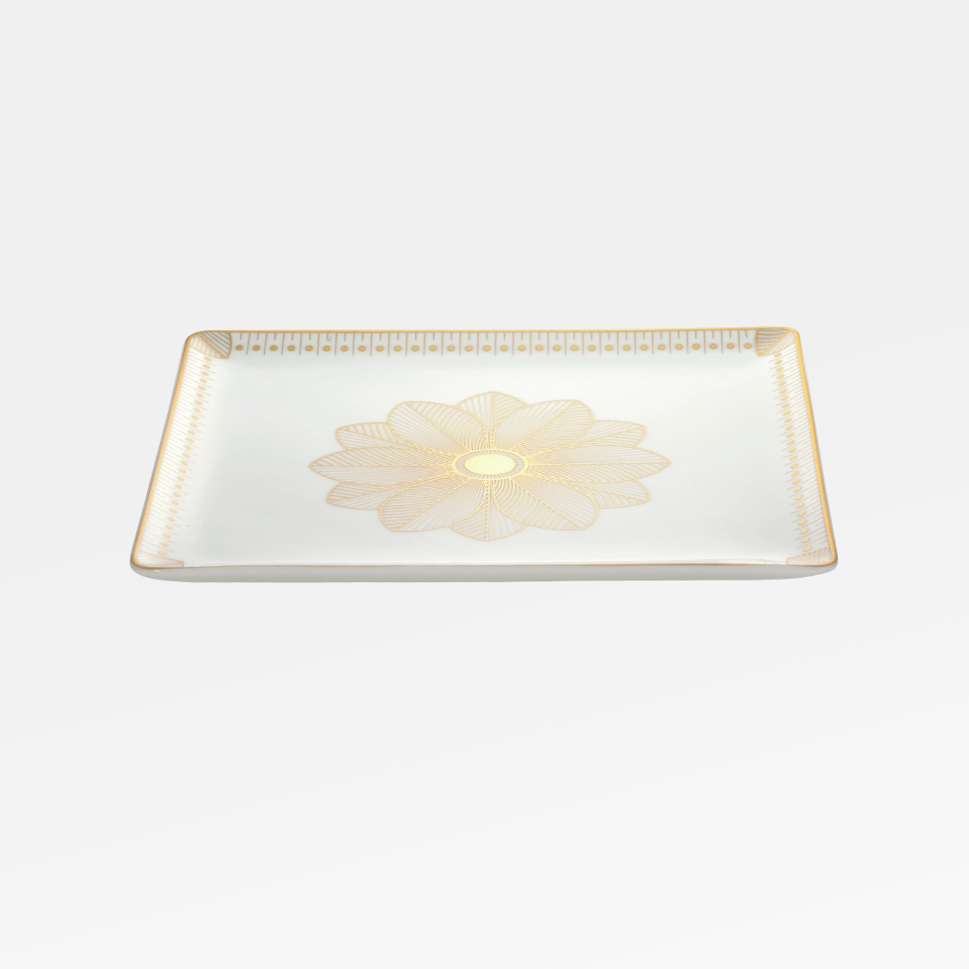 Rectangular Tray in Limoges porcelain with gold decoration from Malmaison Impériale collection. This tray can also be used as a decorative object holder
