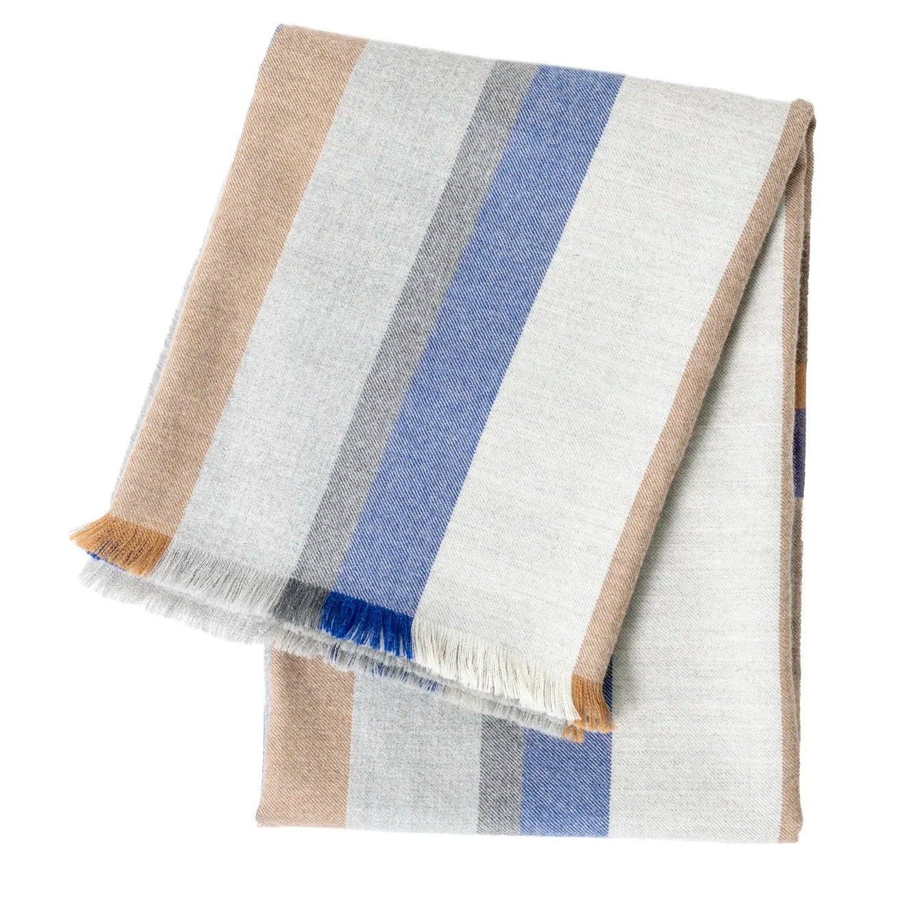 Made of 100% baby alpaca and using five different colored yarns, we took the classic plaid pattern and enlarged it, while finishing the ends with eyelash fringe. The result is a more modern feel. It’s perfect for use at home, your next fireside gathering, or in transit to your next destination.