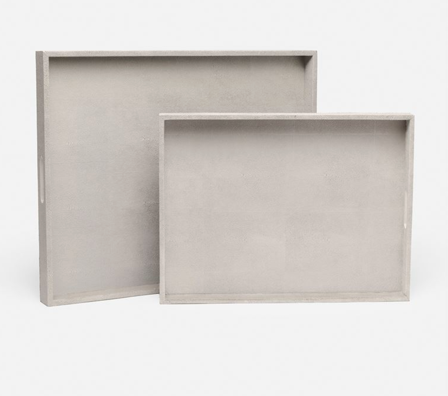 The Emery trays give the striking patterns of the faux shagreen finish a chance to truly shine. Available in square and rectangle sets to meet all of your display needs. Dimensions: