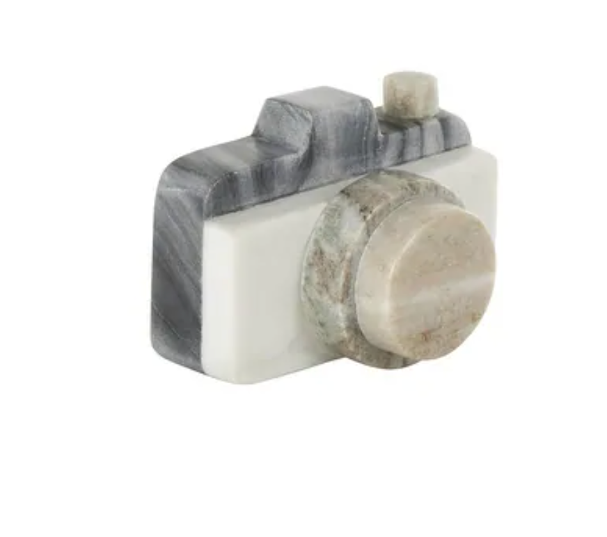 Capture the whimsy of modern art with this delightful Pixel Marble Camera sculpture. Blending retro camera charm with contemporary geometric design, it's a conversation starter that celebrates the intersection of analog nostalgia and digital creativity. Perfect for photography enthusiasts, design lovers, or anyone who appreciates quirky décor that doesn't take itself too seriously. Display it on a shelf, desk, or bookcase to add personality and a touch of artistic flair to any room.