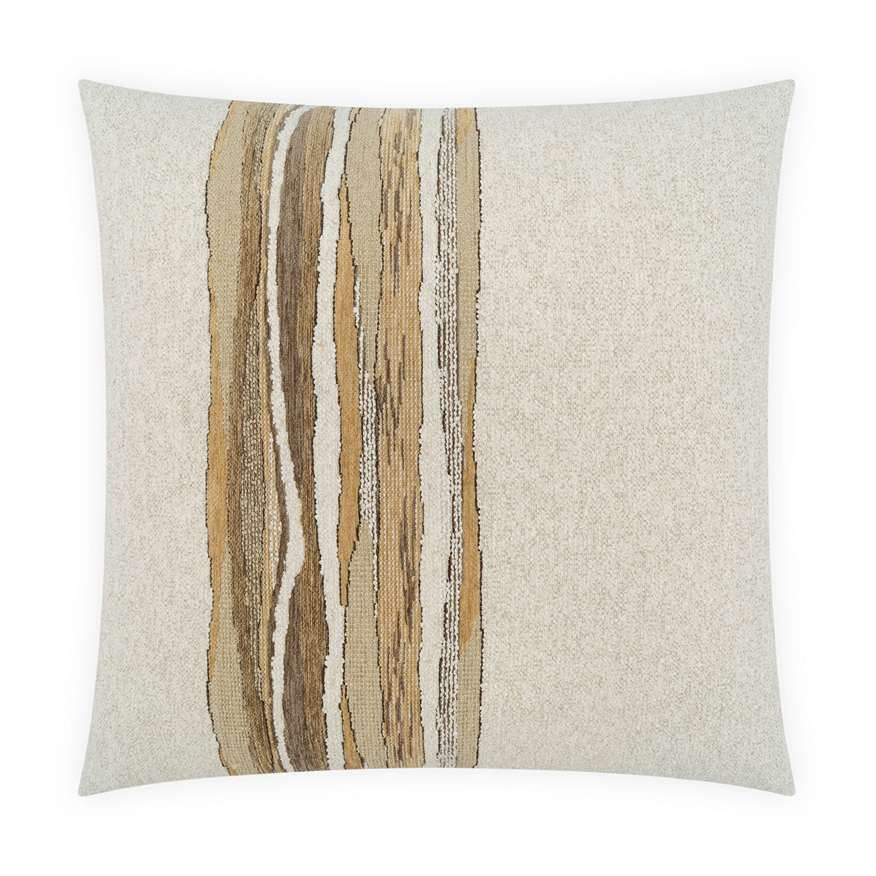 Striking organic stripes in warm, earthy tones create visual movement across this 22 x 22 pillow, anchored by a serene neutral base. The dynamic linear pattern adds contemporary sophistication to any seating arrangement while maintaining the versatility to complement both minimalist and layered interiors. Perfect for introducing subtle texture and depth without overwhelming your space.