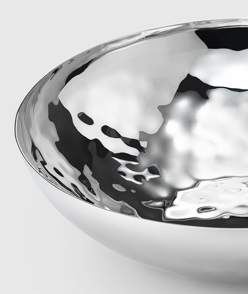 This modern serving bowl has a simple, pure design for everyday use. Crafted of 100% stainless, this it is perfect for fruits or side salads Easy-care and no polishing!