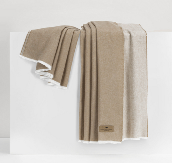 Beehive Cashmere & Yak Throw - Beige & Cappuccino