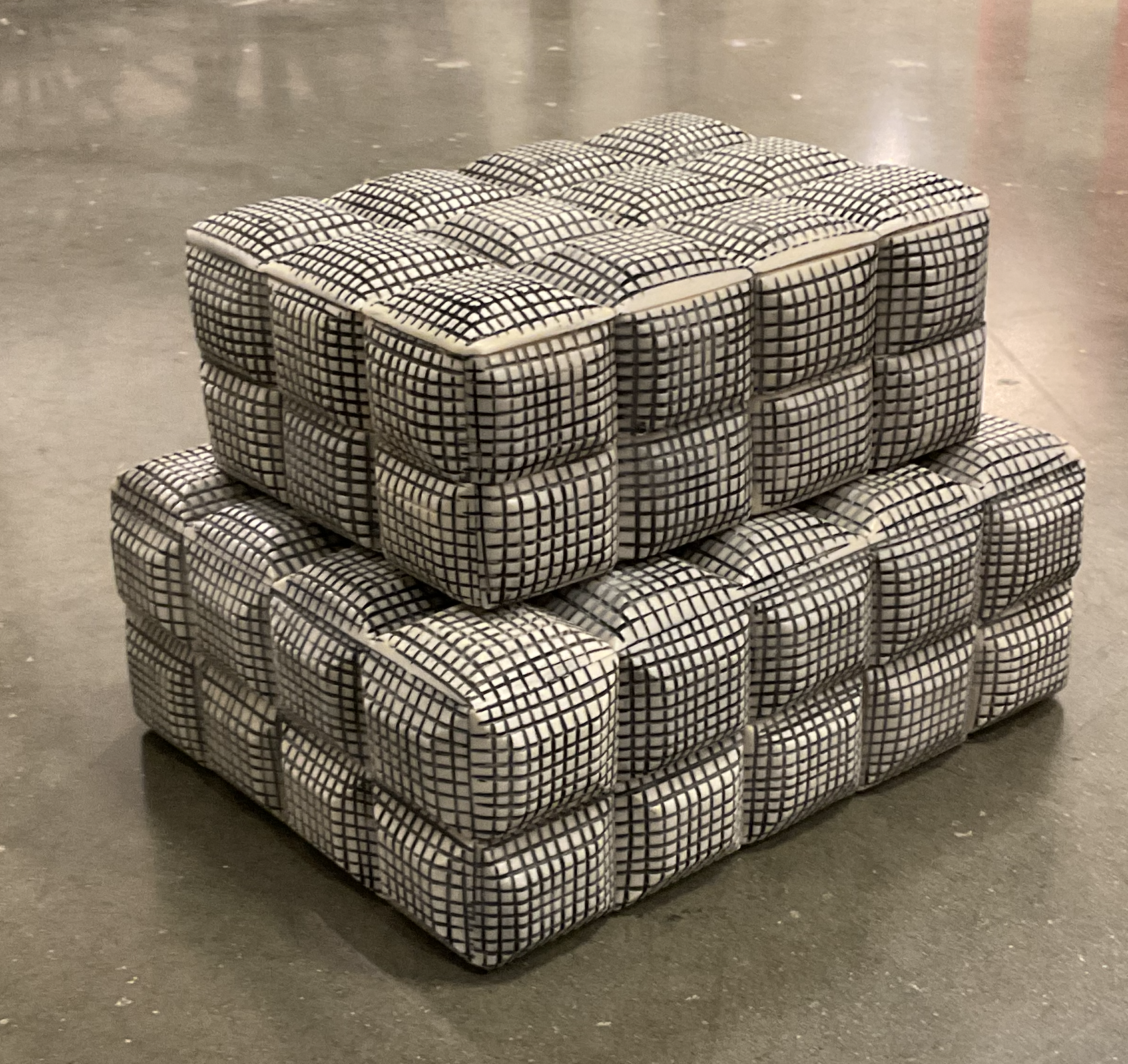 Crafted from bone with a bold puffed checkered design, this piece makes an edgy addition to any space. Stack multiple boxes together for dramatic impact, or let a single piece stand alone as a striking accent.
