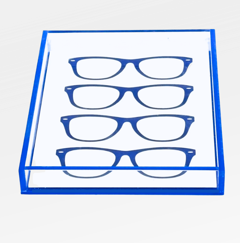 Organize your glasses in style with the Specs Eyeglass Tray! Made of acrylic and available in various colors, this clever holder adds a playful touch to your daily routine. Say goodbye to lost glasses and hello to a fashionable solution!