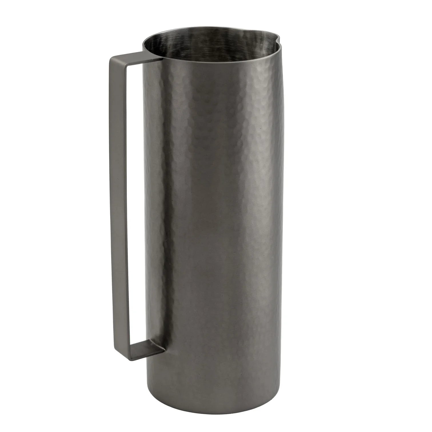 Serve boldly with the Temari Hammered Pitcher, a striking blend of artisanal craft and modern design. Handcrafted in India from durable stainless steel, its hammered gunmetal finish adds rich texture and depth. Ideal for water, cocktails, or specialty drinks, this pitcher turns every pour into a statement, elevating your gatherings with its sleek, contemporary silhouette and daring edge.